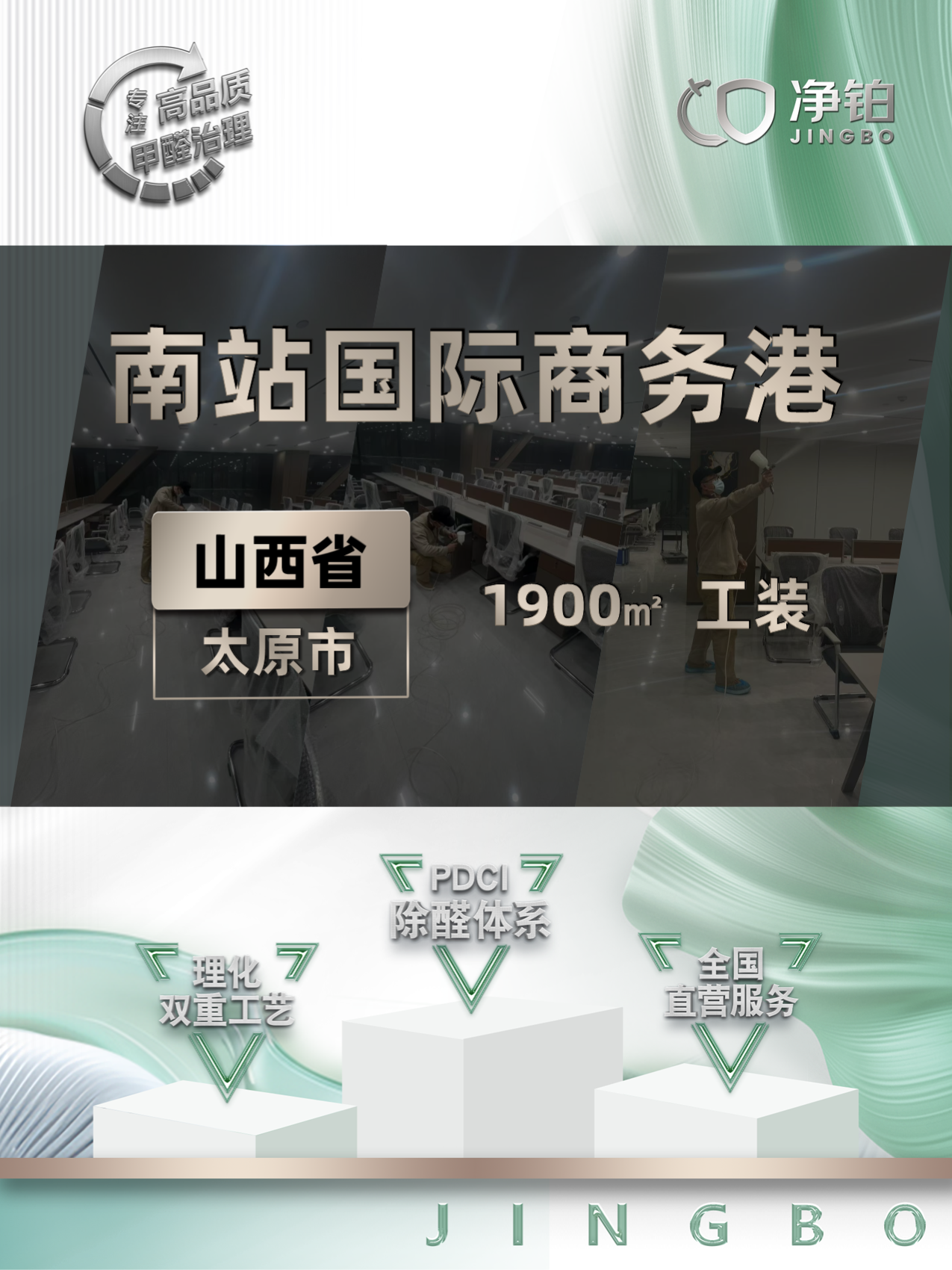 浏览数:419次 发布时间:2025-02-19 15:24:00 作者:gz.jbhbjqzl.com山西太原南站国际商务港1900平米工装除甲醛服务
